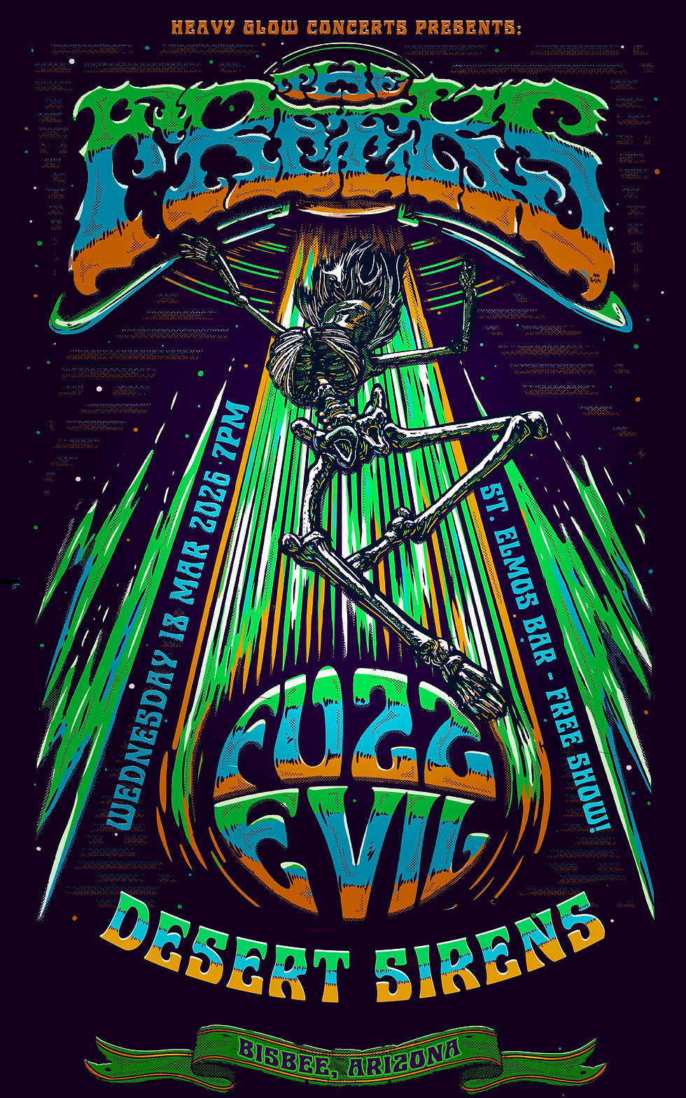 Time To dust off the cob webs of 2025 and get into 2026 with a bang, with no other than our boys The Freeks. This is gonna be a party. Free show at St Elmos in Bisbee 3.18. Bring a friend and lets get wild. Desert Sirens will be opening the set at 7pm so don't be late. We got a few new surprises for the set. Here is the upcoming setlist